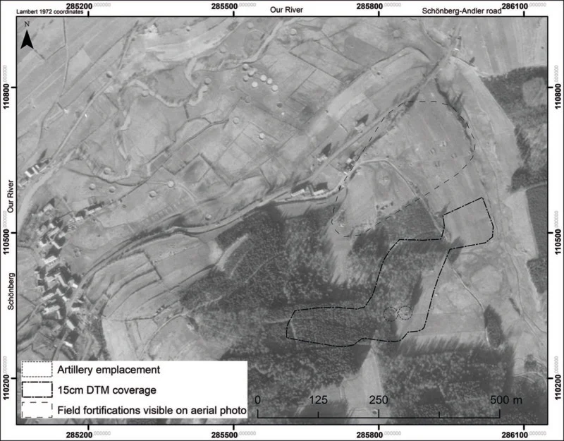 Despite its historical significance, surprisingly little was known about the battlefield’s features. The dense forest in the area concealed most traces, making aerial photographs ineffective and on-foot surveys impractical.