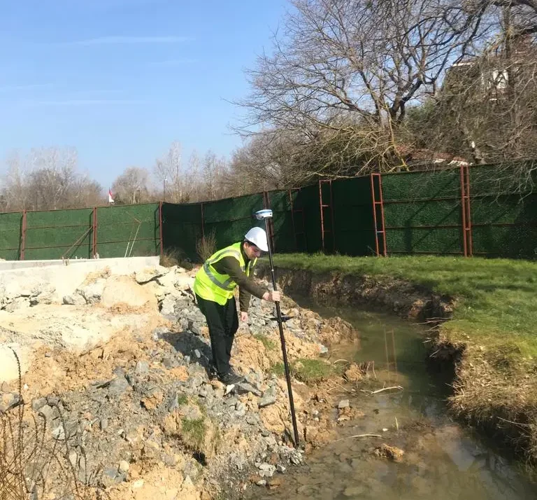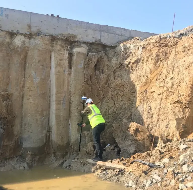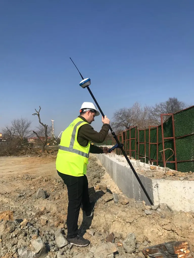Especially besides construction equipment and near the buildings, it may cause signal errors. When your GNSS receiver has IMU, it allows you to try with different angles of the pole.